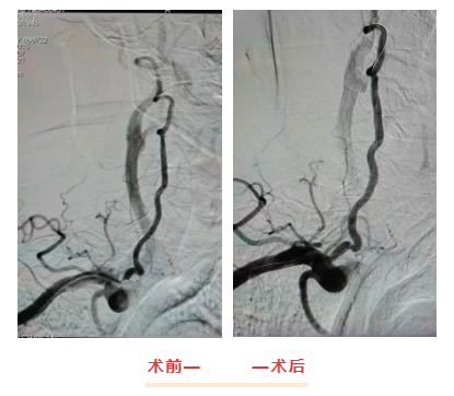 9月29日,完善术前准备,该介入团队创新性地采用了经右侧远桡动脉的微创入路实施脑血管造影及椎动脉支架植入术。相较于传统路径,此入路方式创伤更小、恢复更快,术后患者无需限制卧床,无需使用压迫器,不影响术侧手运动功能,也显著降低了桡动脉闭塞等并发症风险,患者舒适度大大提高。手术过程顺利,术后患者头晕症状即刻得到缓解,复查显示支架内血流通畅,脑供血得到有效改善。患者于10月2日康复出院。