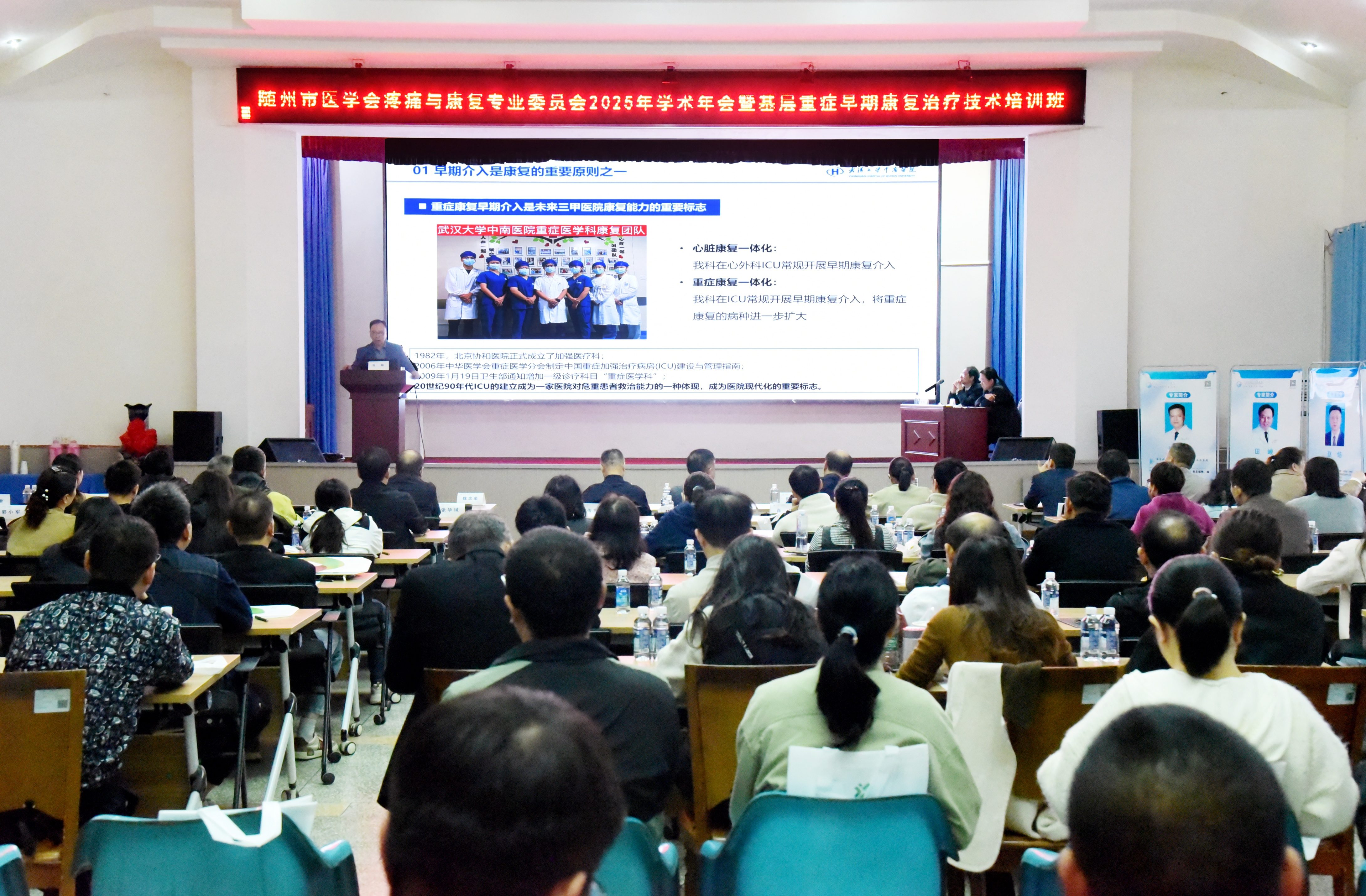 为进一步提升全市康复医学水平,更好地服务于重症康复患者,10月18日,由随州市疼痛与康复专业委员会主办、广水市一医院承办的“随州市医学会疼痛与康复专业委员会2025年学术年会暨基层重症早期康复治疗技术培训会”在广水市一医院学术报告厅举办。随州市及周边地区疼痛科、康复医学科、重症医学科从业人员,随州市医学会疼痛与康复专业委员会全体委员200余人共同探讨疼痛康复技术的前沿理论与实践应用。