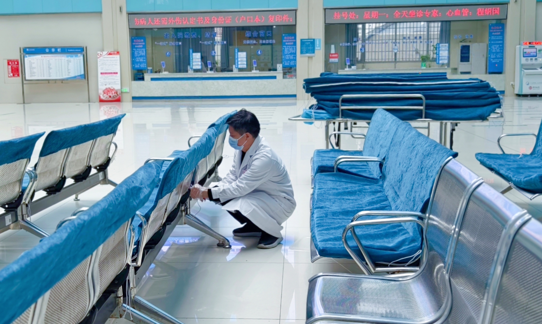 “以前坐这铁椅子,时间稍长就感觉凉,尤其对我们老年人来说很不方便。现在加了垫子,又软和又保暖,舒服多了,医院想得真周到!”正在候诊的李大爷摸着新安装的软垫,连连称赞。整洁统一的蓝色的布套与软垫与医院环境协调融合,不仅提升了视觉温度,更让患者在等待就医的过程中感受到了实实在在的温暖。