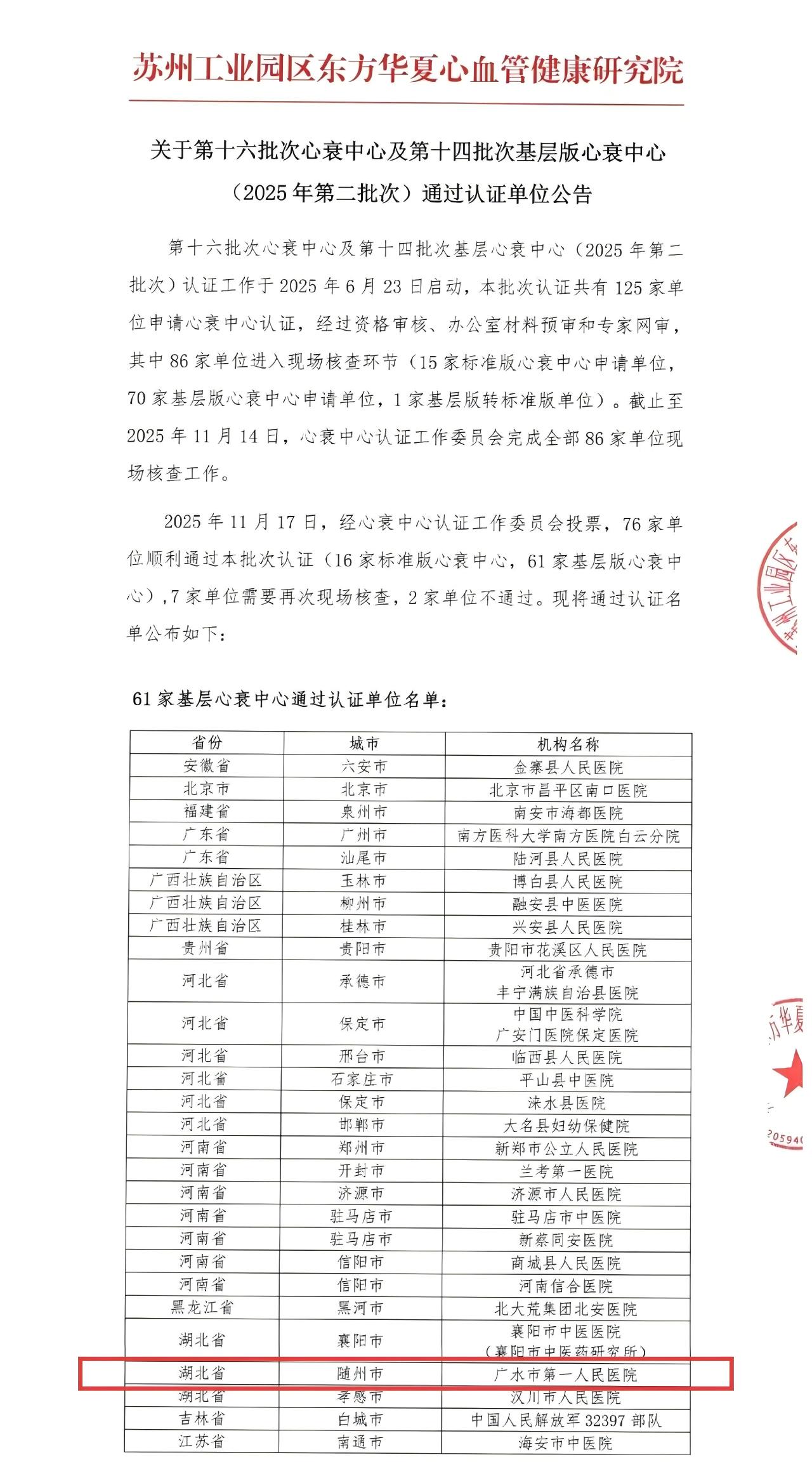 11月17日,广水市一医院顺利通过中国心衰中心认证,成功跻身“国家级基层版心衰中心”行列。这是该院继成功创建国家级胸痛中心、基层版房颤中心之后,在心血管疾病诊疗中心建设上取得的又一重大突破,标志着其在国家级医疗中心认证的道路上实现了新的跨越。