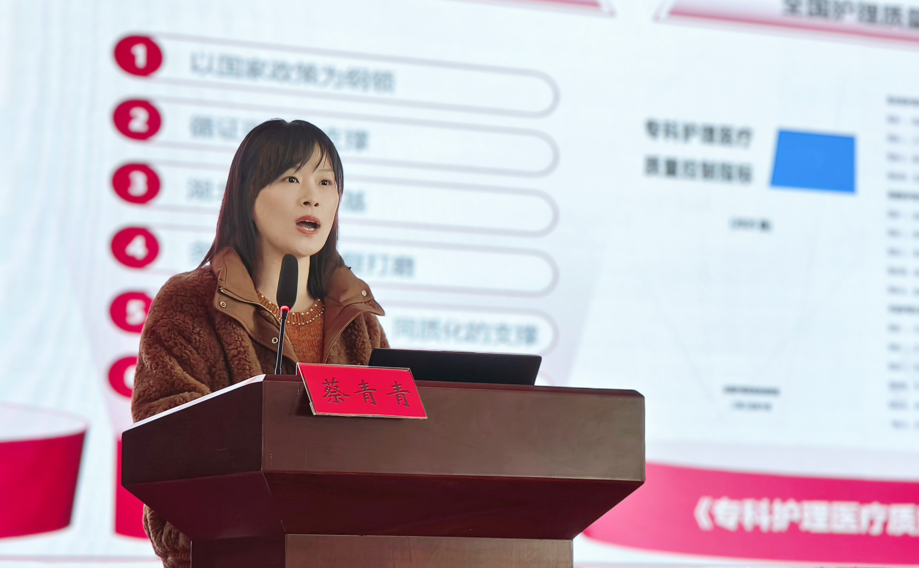 付晓霞代表市护理质控中心作2025年度工作总结报告。报告系统回顾了一年来中心在完善组织体系、深化质量控制、强化培训指导、推进信息建设等方面取得的成效:健全了“分层负责、协同联动”的管理机制;开展各类培训覆盖近千人;实施动态监测与专项检查,实现区域督导全覆盖;推动质量管理工具应用与数据深度分析,促进质量持续改进。同时,报告也客观剖析了当前存在的问题,如基层数据上报规范性不足、质量改进闭环有待深化、区域发展不均衡、信息化建设滞后等,并明确了下一步将以“质量、安全、创新、发展”为导向,重点围绕深化质控活动、强化数据分析、创新培训模式、完善协同机制等方面持续发力。
