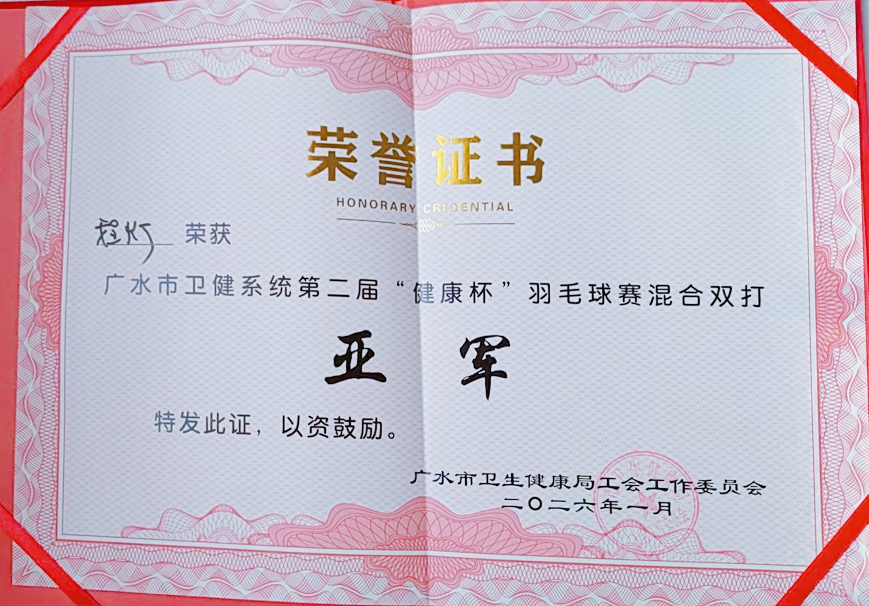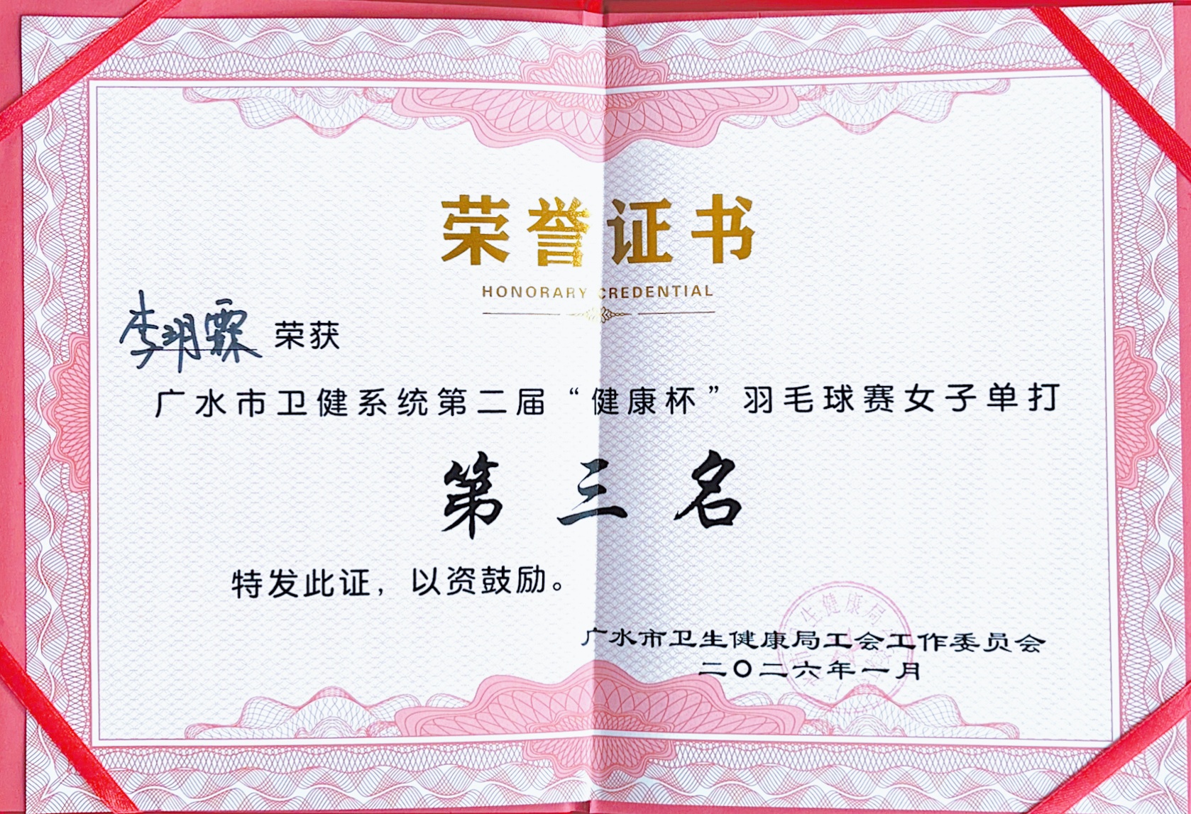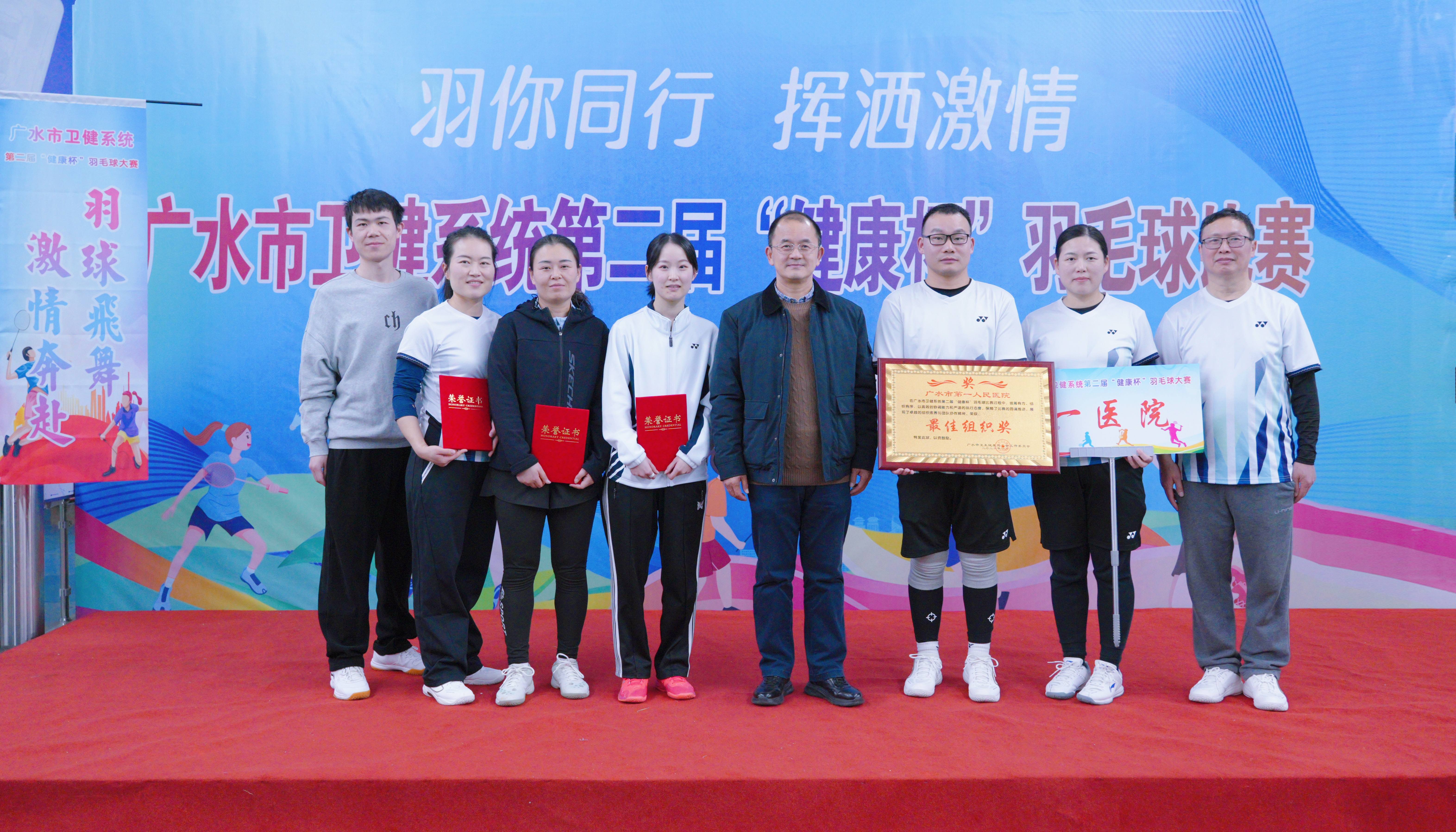 1月13日,广水市卫健系统第二届“健康杯”羽毛球赛圆满落幕。广水市一医院工会积极组织职工参赛,凭借出色表现荣获赛事“最佳组织奖”,李玥霖夺得女子单打第三名,杨瑞、程灯组合斩获男女混合双打亚军,充分展现了医院职工团结拼搏、昂扬向上的精神风貌。