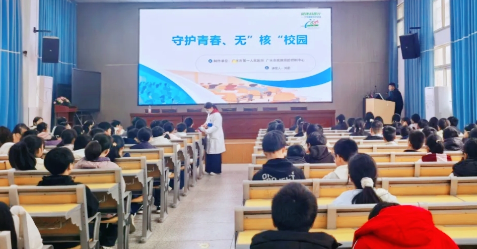 为进一步提升青少年对结核病的防控意识,3月24日,广水市一医院感染性疾病科主任刘倩、主治医生刘蔚走进广水市长岭镇长岭中学,与广水市疾控中心联合开展以“守护青春、无‘核’校园”为主题“世界防治结核病日”健康科普宣教活动,将专业医疗知识送入校园,助力构建健康安全的校园环境。